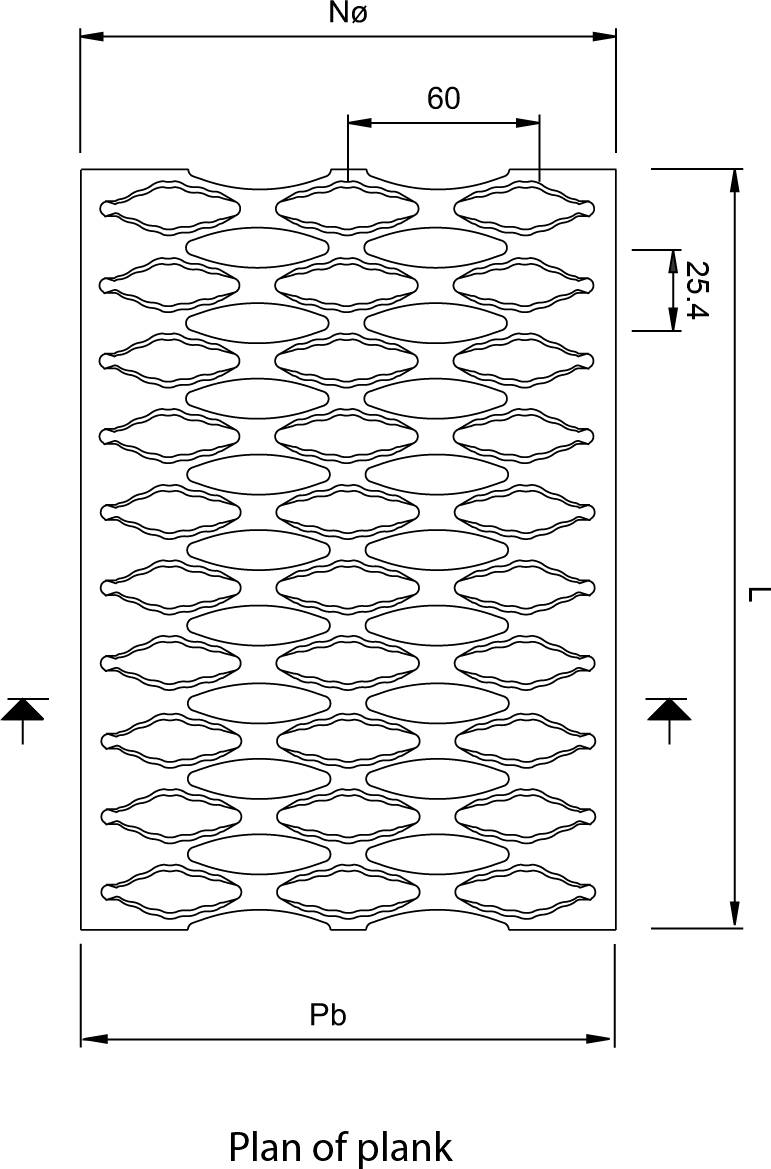Comprising of large elliptical shaped serrated holes, in 2mm thick material. Providing an extreme anti-slip surface with maximum drainage offering high loading capabilities and maximum strength to weight ratio. This punched profile has a high transparency of 35-45%.
