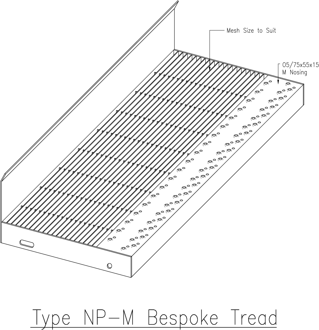 Similar to the SP-M only replacing the grating element with the Type NP thus giving a linear look tread with the added benefit of a non slip nosing that can be colour contrasted where applicable.