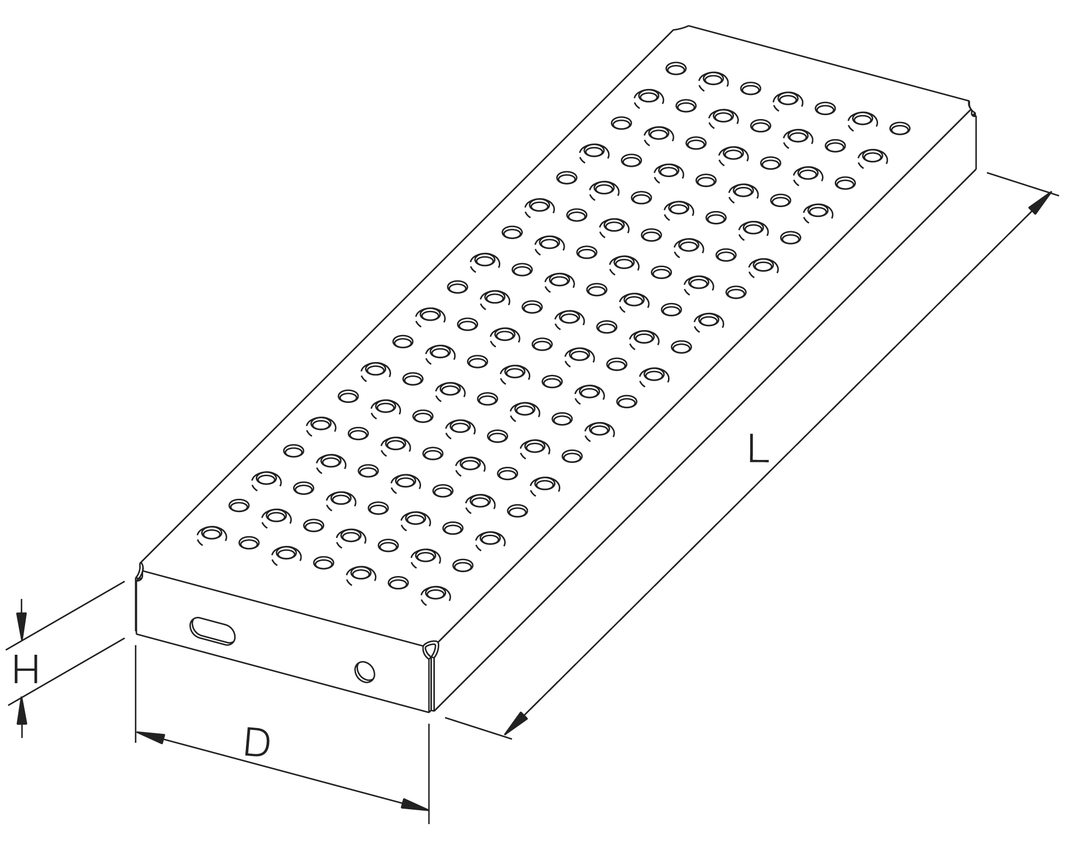 | O3 Perforated Stair Treads 2mm thick Galvanised Steel to BS EN 1461:2009 14mm dia raised hole, 9mm dia depressed hole Loading Designed in Accordance with BS EN 4592: Part 0: 2006 | |||||